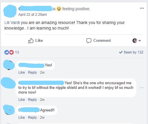 I teach breastfeeding classes, run breastfeeding support groups, administer some of the largest online breastfeeding groups and lecture at professional seminars and conferences.